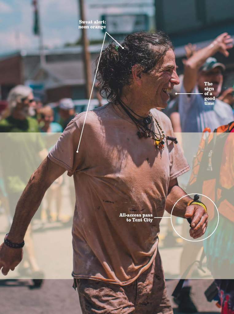 Back in Damascus, as the early summer sun sets over town, Tent City comes alive with tiki torches and the percussive beat of drummers. Some revelers dance in the fields, while others carve up the pig they started roasting earlier in the day. This is the moment the hikers have waited for, and it feels right to let them proceed without interruption. We decide to head out before the party really gets going, but as we’re leaving, ChainE catches up to us, two plastic orange wristbands in hand. “You’re welcome here anytime,” he says.