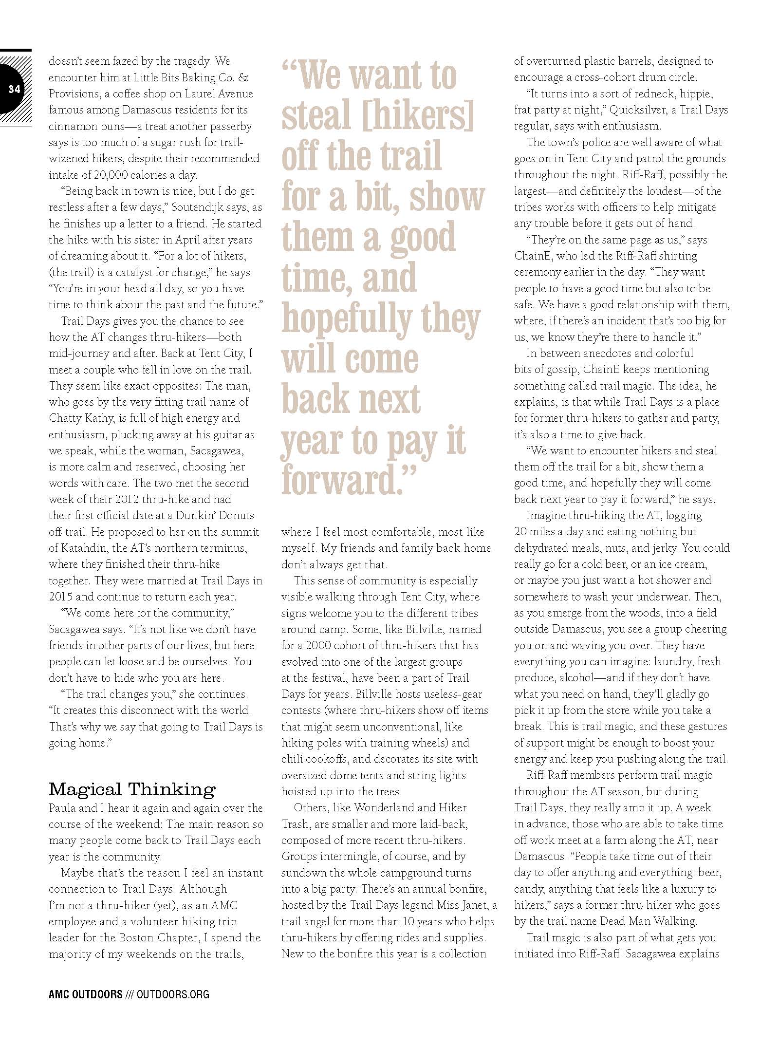 “The trail changes you,” she continues. “It creates this disconnect with the world. That’s why we say that going to Trail Days is going home.”